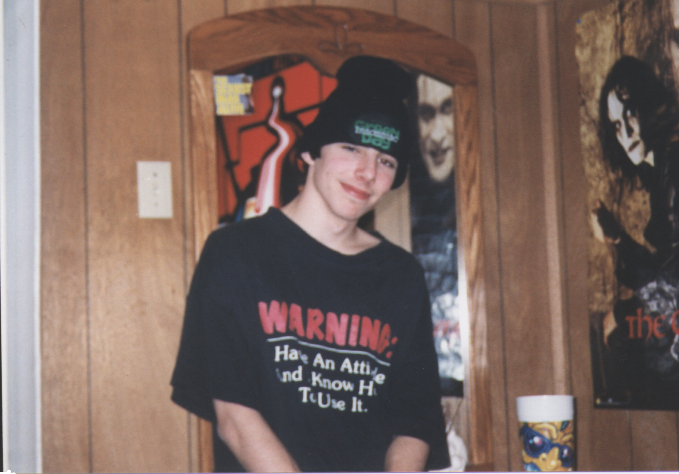 Sorry only one picture, but as soon as we get some more scanned in, we'll put 'em on. This one's of Eric on New Years Eve (stonned out of his mind), it's not an instrument or band picture but it's either this or nothing. Later. |
